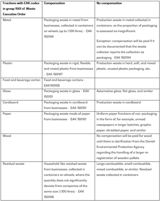 - Waste-producing companies that have their waste collected as part of a municipal household collection, or that drop off their waste in a drop-off scheme (recycling stations), cannot apply for compensation.